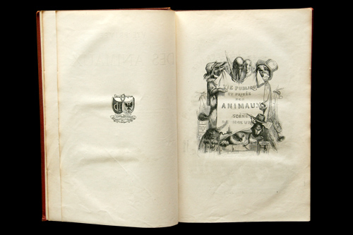 バルザック、ジョルジュ・サンドなど多数の著名な作家たちが グランヴィルの描いた擬人化された動物たちを主人公にして、 社会を風刺した話しを書き下ろしたもの。 フルモロッコ装丁・背金箔・見返しにマーブル紙・三方金