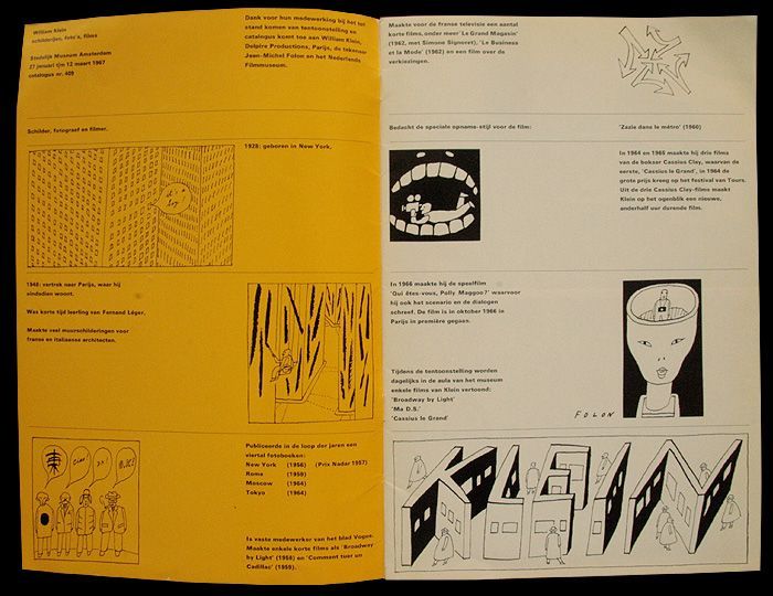 | 発行年 | 1967年 | | 出版社 | Stedelijk Museum Amsterdam | | 著者 | William Klein (photo) | | condition | 本体 : 経年ヤケ・キズ・僅かな歪み | | size, pages | 18.5cm x 27.5cm, 22p | | | | アメリカ出身でフランスで活躍している写真家・映画監督の ウィリアム・クライン。 本書は、1967年にオランダのアムステルダム市立美術館で 開催されたクラインの写真展の冊子カタログになります。 4部作として発表された彼の代表的な写真集「ニューヨーク」、 「ローマ」、「モスクワ」、「東京」からの作品も収録。 クラインのバイオグラフィーにはジャン・ミシェル・フォロンの 挿絵が使われています。テキストはオランダ語。 condition- 詳細画像1 condition- 詳細画像2 condition- 詳細画像3 condition- 詳細画像4 condition- 詳細画像5 |