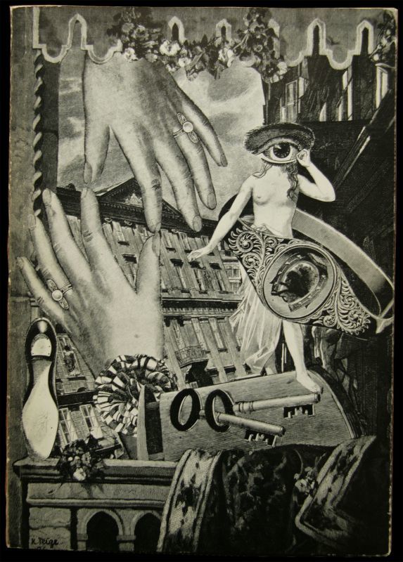 本品は、ドイツのエッセンにあるフォルクヴァンク美術館で 1966年に開催されたカレル・タイゲのコラージュ作品と チェコのシュルレアリスムの写真展のカタログになります。 タイゲのコラージュ8点(うち1点は見開き2頁)と シュルレアリスムの写真8点が収録。 タイゲのコラージュ作品とシュルレアリスム写真の2部構成で どちらとも左綴の装丁 (上下逆さ)になっています。 ソフトカバー、テキストはドイツ語。 |