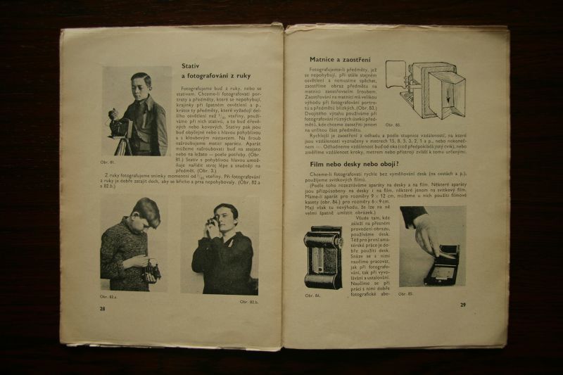 | 発行年 | 1936年 | | 出版社 | Nakladem ceskoslovenske graficke unie A.S. | | 著者 | Antonin Dohnal (text), L.Sutnar (cover design) | | condition | 本体 : 経年ヤケ・裏表紙にシミ・表紙にシール剥がし跡 折れ跡 | | size, pages | 16cm x 22.5cm, 54p | | | | チェコで出版された青年アマチュア写真家のためのマニュアル (小冊子)。 カバーデザインを手掛けたのは、チェコを代表する前衛ブックデザイナー の一人ラディスラフ・ストナーです。 写真の構造、仕組みをはじめ、撮影した写真作品の額装の仕方まで 記載されたマニュアル本! 未綴じ、テキストはチェコ語。
