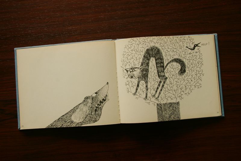 | 発行年 | 1970年 | | 出版社 | Richard Sadler | | 著者 | Alfred Olschewski | | condition | ジャケット:経年ヤケ・折れ跡・破れ スレ・汚れ 本体:経年ヤケ | | size, pages | 20cmx16cm, 31p | | | | アルフレッド・オルシェウスキーはロシアで生まれ、ドイツ、 ブラジル、イギリスなどさまざまな国で学んだ後、アメリカ に渡り活躍したイラストレーターです。 絵本の仕事はたった6冊しか手掛けていません。 この本に登場するのは鳥、鳥を追うネコ、鳥とネコを追う犬、 テキストは『HELP!』の一言のみ。 ペン画で描かれた彼等の足跡がリズミカルに本の中を駆け巡 ります。カバーを外すと、布ばりの青がとても美しい本です。 アメリカ版初版の翌年に出版されたイギリス版初版。
