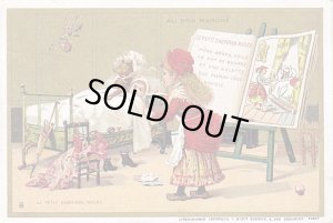 『Le Petit Chaperon Rouge』赤ずきんちゃん世界で最初のデパートといわれるパリ左岸の老舗デパート『ボン・マルシェ』 のクロモカード2枚セット。絵本のワンシーンを真似て『赤ずきんちゃんごっこ』をする女の子。ぬいぐるみの狼にナイトキャップを被せたり、芸が細かい!size:12.1cm x 8.2cmconditin : 経年によるヤケ・汚れ ・スレ