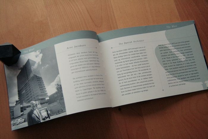 | 発行年 | 2002 | | 出版社 | Radison SAS Royal Hotel | | 著者 | Radison SAS Royal Hotel | | condition | 本体 : 経年ヤケ・表紙にスレ+キズ | | size, pages | 21cm x 14.8cm, 30p | | | | デンマークの首都コペンハーゲンに位置し、中央駅の目の前にそびえ立つ ラディソン・ブルーロイヤルホテル (1960年竣工)は、建築家アルネ・ ヤコブセンが建物だけでなく家具、ライト、ドアノブ、レストランの カトラリーに至るまでトータルでデザインを手掛けた5つ星ホテル。 本書は、2001年の全面リニューアルの際に宿泊者向けに制作された ブックレットで、アルネ・ヤコブセンの人物像、ホテルの歴史、 ヤコブセン・スウィートと呼ばれている【Room 606】などが収録。 表紙は、スワン・チェア型に切り抜かれ、凝った作りになっています。 テキストはデンマーク語と英語。